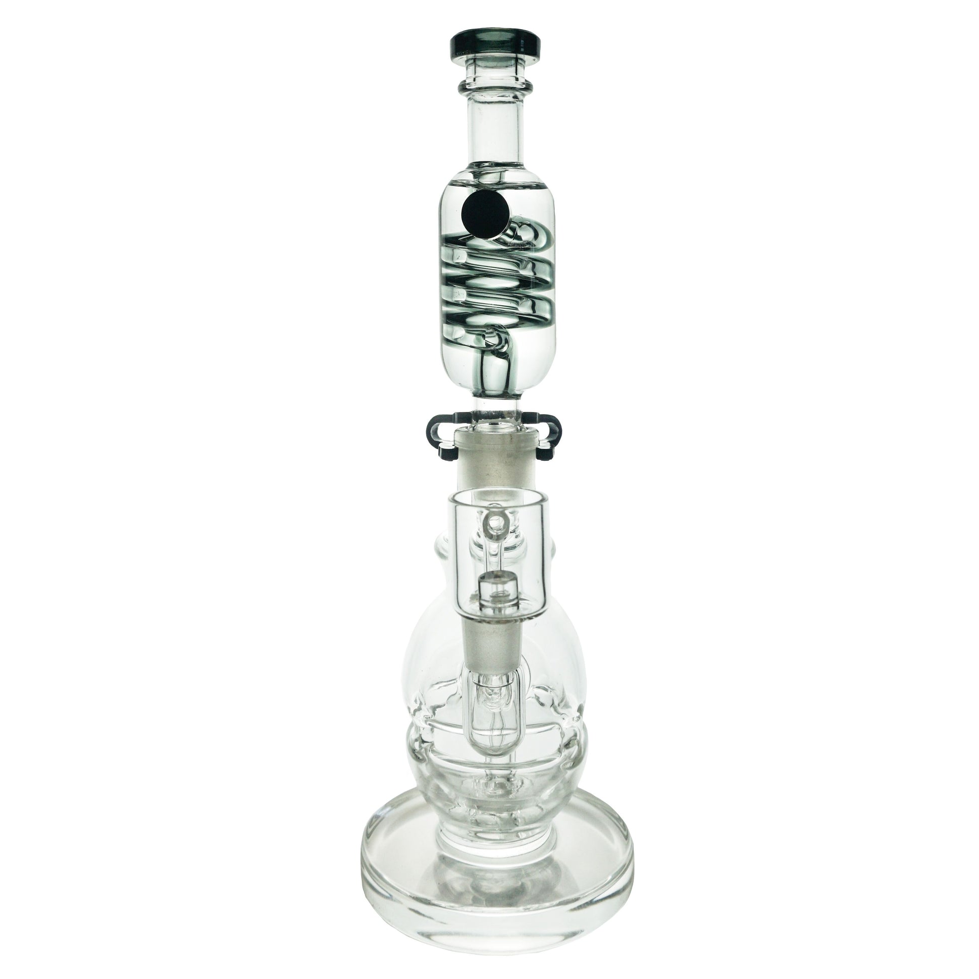 Iconic mini dab rig design that combines function and glycerin cooling power. An improved version of the classic fab-egg dab rig mold, Freeze Pipe's version increases air flow and brings the largest base to the mini rig market. A percolator in the bottom chamber begins filtration, while connecting arms transfer water and smoke back-and-forth between the top and bottom chamber. This action further merges hot smoke with cool cleansing water to improve smoothness. Enjoy stout cooling power, intense flavor and ease of use with this pocket sized mini rig.