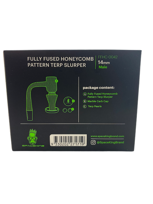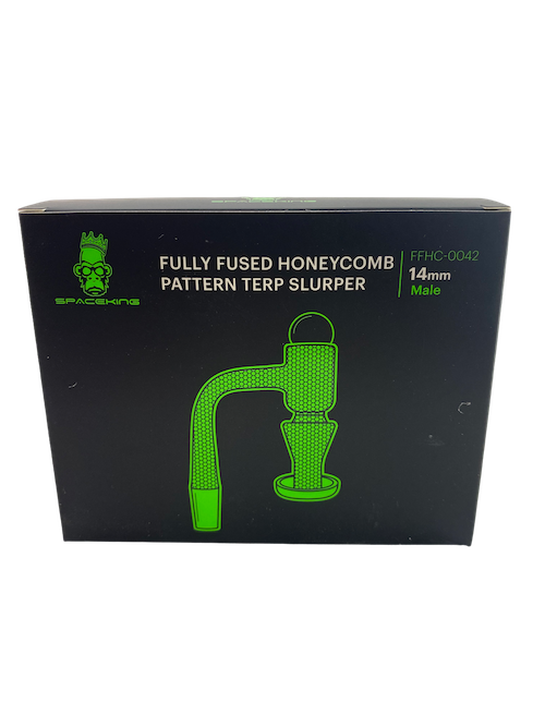 The Space King Fully Fused Honeycomb Pattern Terp Slurper is designed to elevate your smoking experience. With its unique honeycomb pattern, it's the ultimate tool for getting the most out of your concentrates. You'll feel like royalty with every hit!